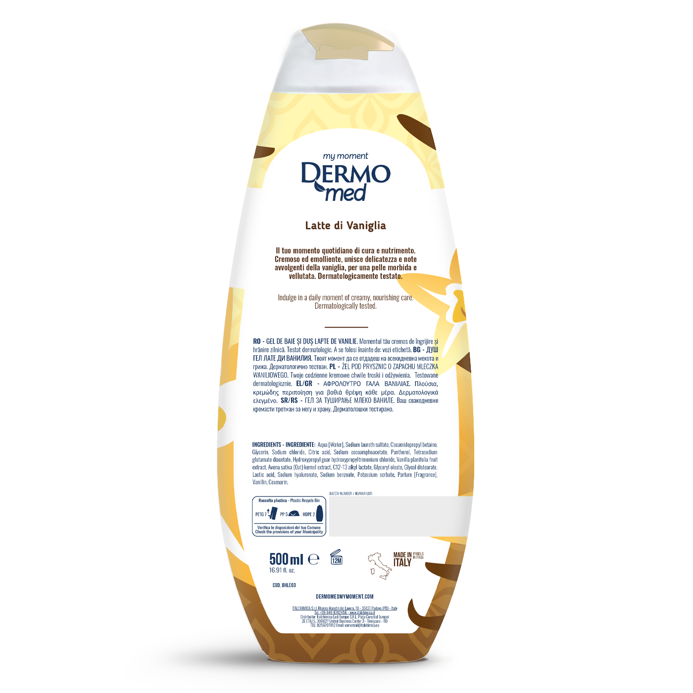 Aqua [Water], Sodium laureth sulfate, Cocamidopropyl betaine, Glycerin, Sodium chloride, Citric acid, Sodium cocoamphoacetate, Panthenol, Tetrasodium glutamate diacetate, Hydroxypropyl guar hydroxypropyltrimonium chloride, Vanilla planifolia fruit extract, Avena sativa (Oat) kernel extract, C12-13 alkyl lactate, Glyceryl oleate, Glycol distearate, Lactic acid, Sodium hyaluronate, Sodium benzoate, Potassium sorbate, Parfum [Fragrance], Vanillin, Coumarin.