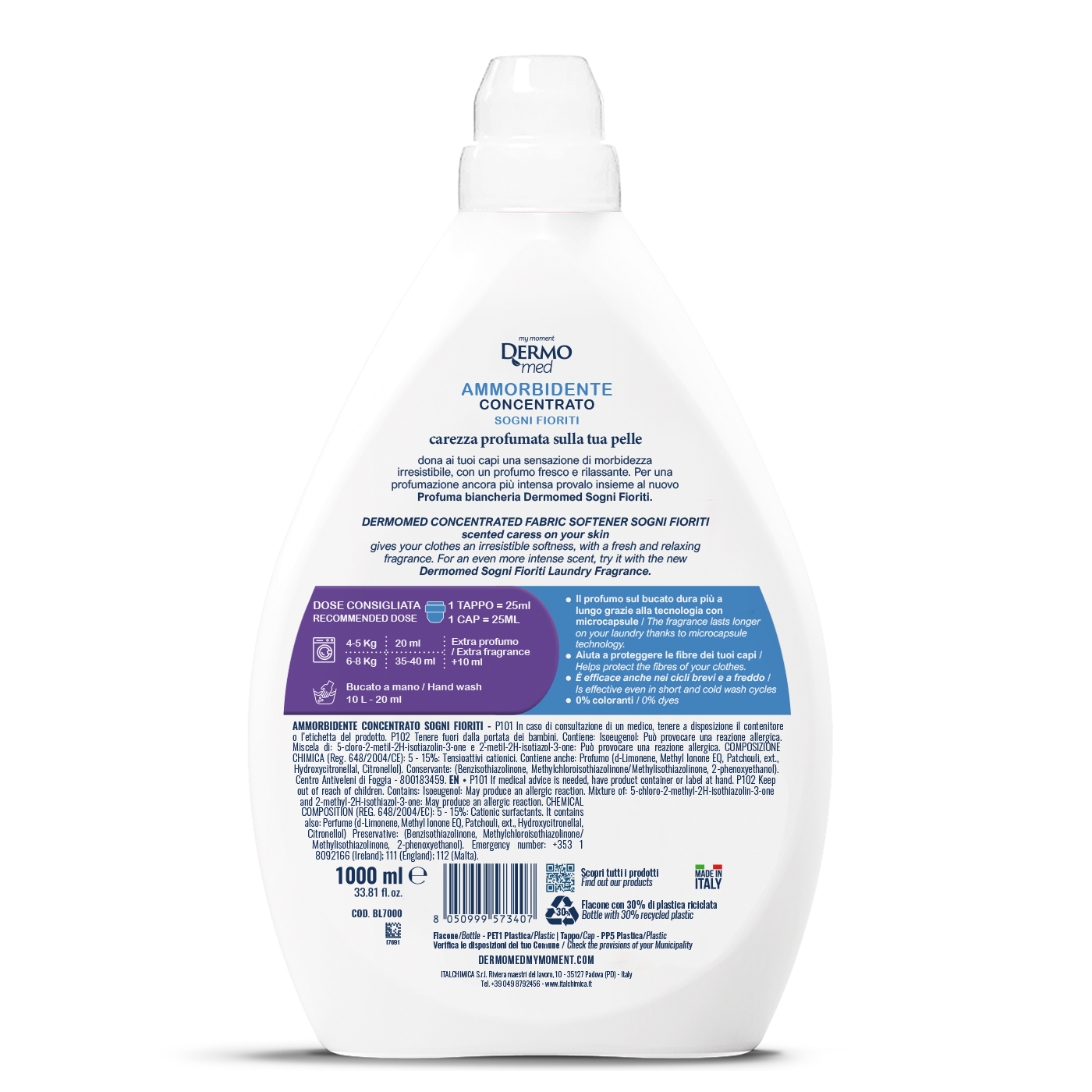 Con la sua fragranza fresca l’Ammorbidente Concentrato Dermomed Sogni fioriti regala al bucato una morbidezza avvolgente e quel fresco profumo di pulito che sa di casa.